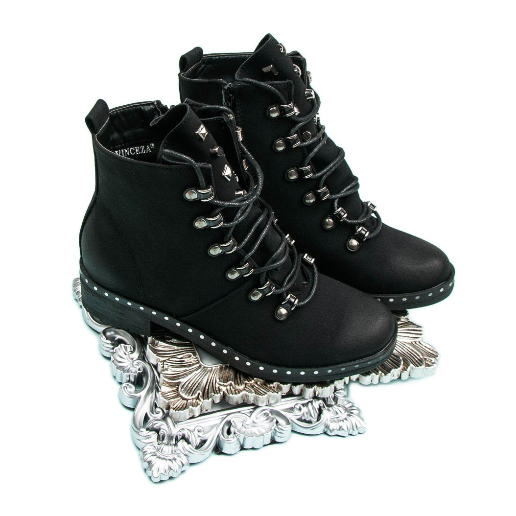 Lucrătorii legați VINCEZA în negru sunt alegerea perfectă pentru fiecare femeie la modă care apreciază confortul și stilul în zilele mai reci. Acești încălțăminte, perfecte pentru sezonul toamnă/iarna, se remarcă prin designul lor modern și soluțiile practice care cu siguranță vor atrage amatorii de accente casual și rock.