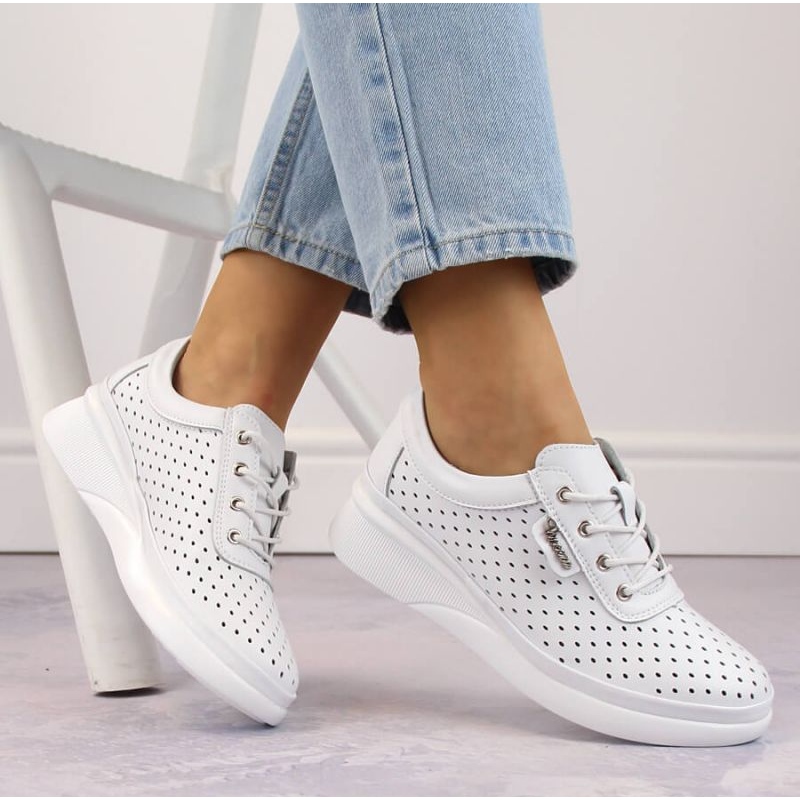 Detalii: Vinceza W JAN274 pantofi cu pană ajurat din piele albă