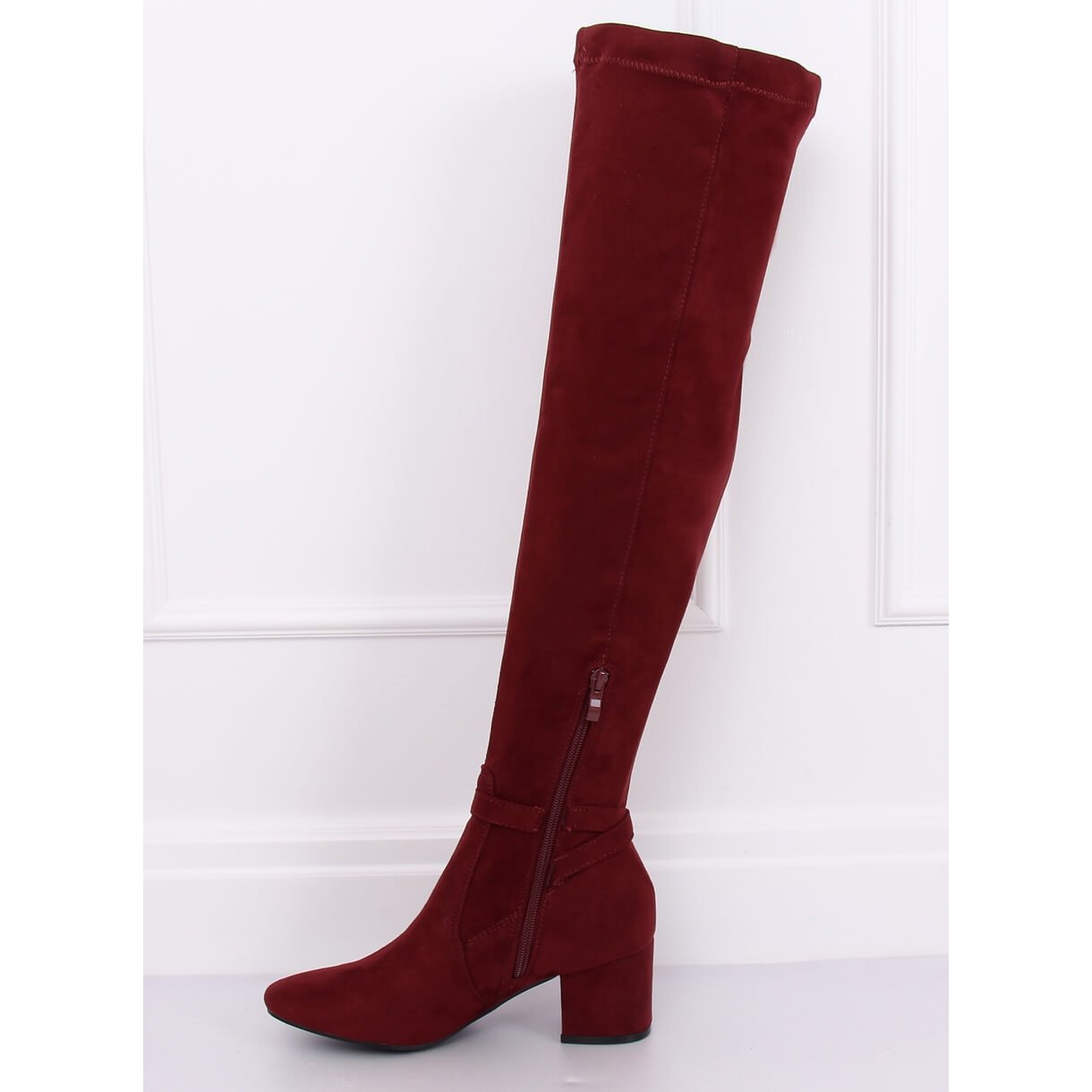 Inna marka Cizme cu toc mic peste genunchi YL-151 Wine roșu