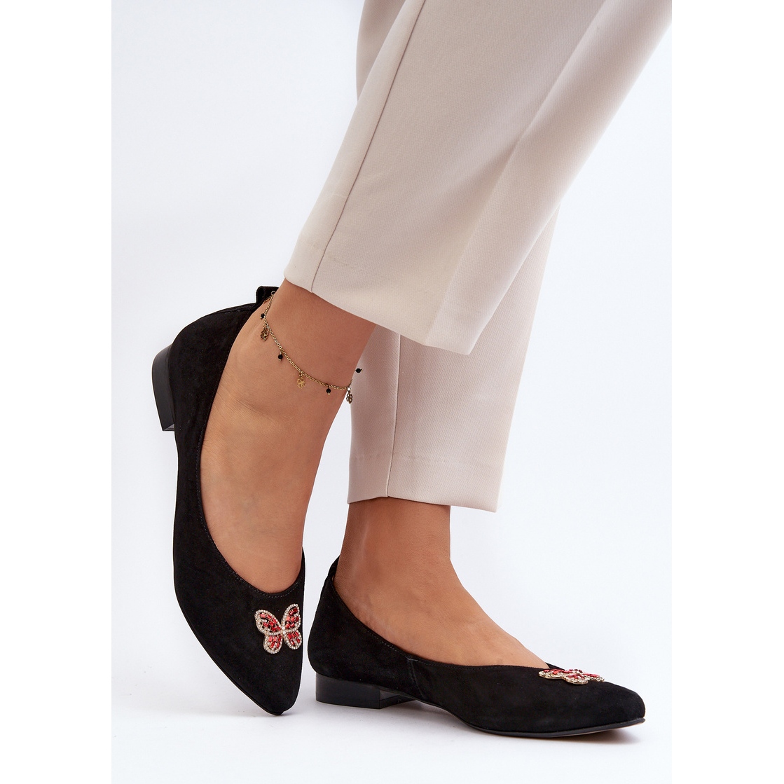 Detalii: Zazoo 2887 Balerini din piele intoarsa cu fluture decorativ, negru