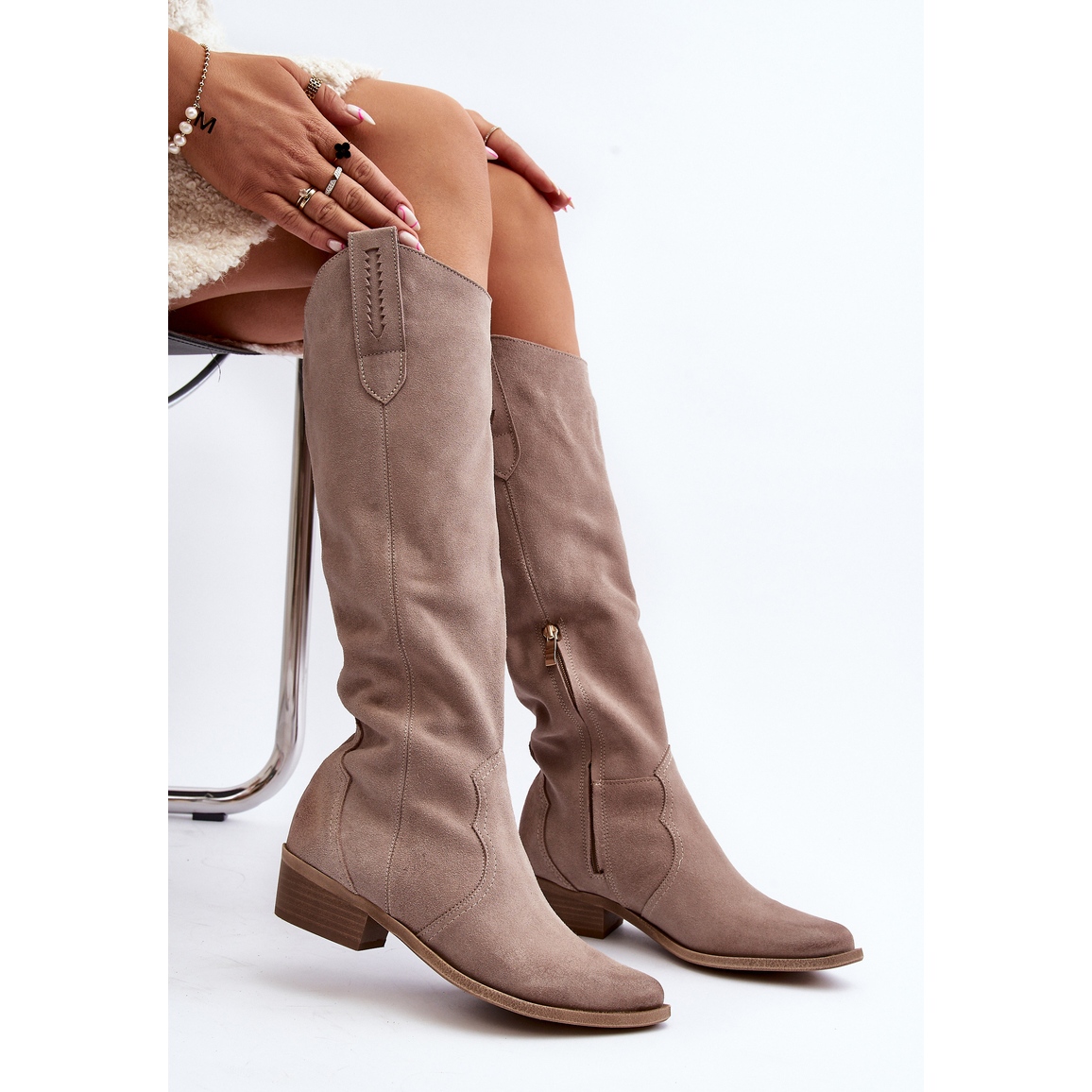 **Zazoo 3427 Cizme cowboy din piele intoarsa pentru dama bej cappuccino - Must-have in acest sezon!**