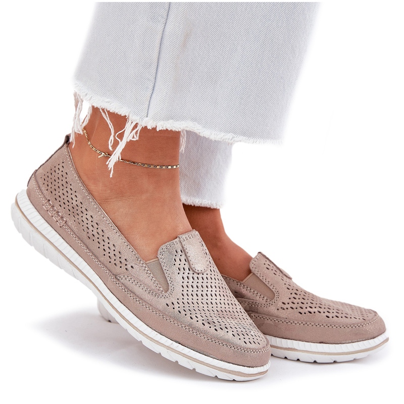 eVento EVento Zlota OpenWork Openwork Loafers de aur